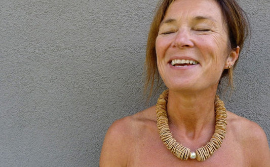 Smykker av reinsdyrgevir, fiskeskinn og never. I disse smykkene bruker jeg naturmaterialer som...