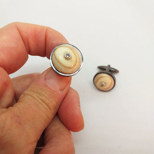 Mansjettknapper laget av norske bergarter som larvikitt og rombeporfyr. Larvikitt (Norges nasjonalbergart)...